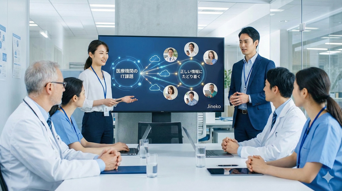 株式会社ジネコは、ITコンサルティング事業からスタートしました。ユーザーの皆様が「正しい情報にたどり着く」ことを可能にするため、取引先の医療機関の皆様のITに関する様々な課題を解決してきました。